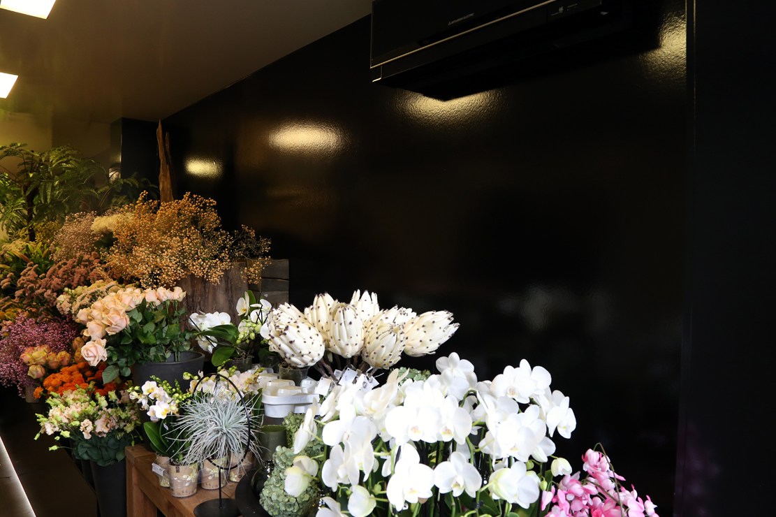 Bij de renovatie van het binnenschilderwerk trokken we de lijn door, maar zochten we toch naar contrasten. De strakke stijl gecombineerd met het romantische van bloemen en de creatieve kijk van Ann zelf gaf de winkelrenovatie net dat beetje “je ne sais quoi” dat ze zocht.