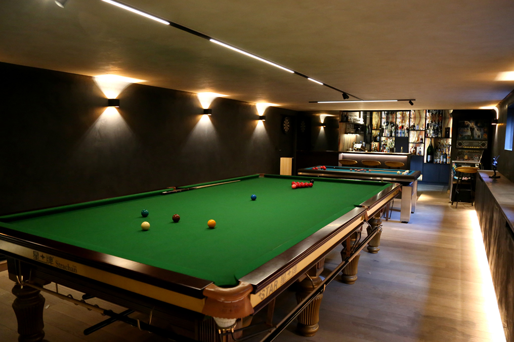 Voor de zogenoemde ‘mancave’ van onze klant haalden we het onderste uit de kan en kwamen we met heel wat speciale schildertechnieken op de proppen. De ruimte geeft je hierdoor een speciaal gevoel. De indirecte verlichting, de details en de perfecte afwerking doen de rest.