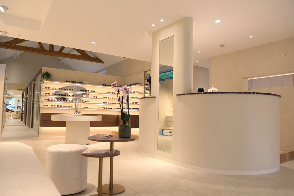 Doordachte verlichting is bij de renovatie van een handelspand zoals Optiek Nathalie uiterst noodzakelijk. Een belangrijke en functionele accessoire zoals een bril vraagt om goede verlichting. Zowel indirect als natuurlijk licht kregen een plek, maar ook subtiele marketingleds vonden hun weg.